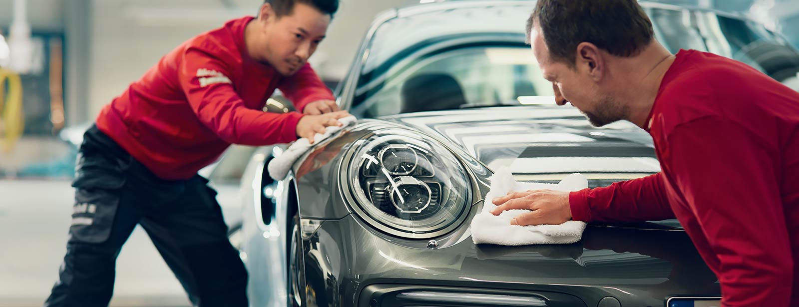 Wählen Sie aus unseren Pflege-Paketen den gewünschten Service: von der intensiven Innenreinigung bis zur Premium-Komplett-Pflege und vielen, speziell auf Ihren Fahrzeugtyp abgestimmten Extras. Wir kennen die speziellen Anforderungen Ihres Fahrzeugtyps und verwenden nur die von Porsche empfohlenen Pflegemittel. Damit sorgen wir dafür, dass Ihr Auto so gut wie neu aussieht – von der allgemeinen Fahrzeugreinigung bis zur Komplett-Pflege.